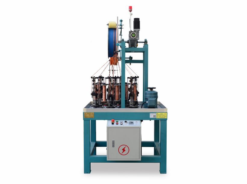特点: 设备功能齐全,含计米,断线停车,产时记录电机过载保护等,且可通过更换锭杆实现同机编织多种材料...